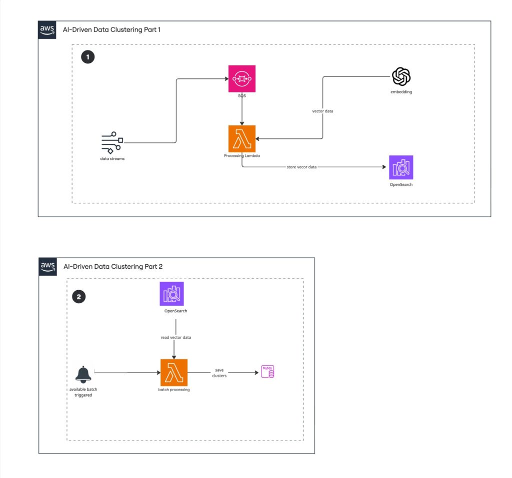 The system needed to process and cluster high-volume data with unpredictable workloads while keeping infrastructure costs low and scaling automatically.